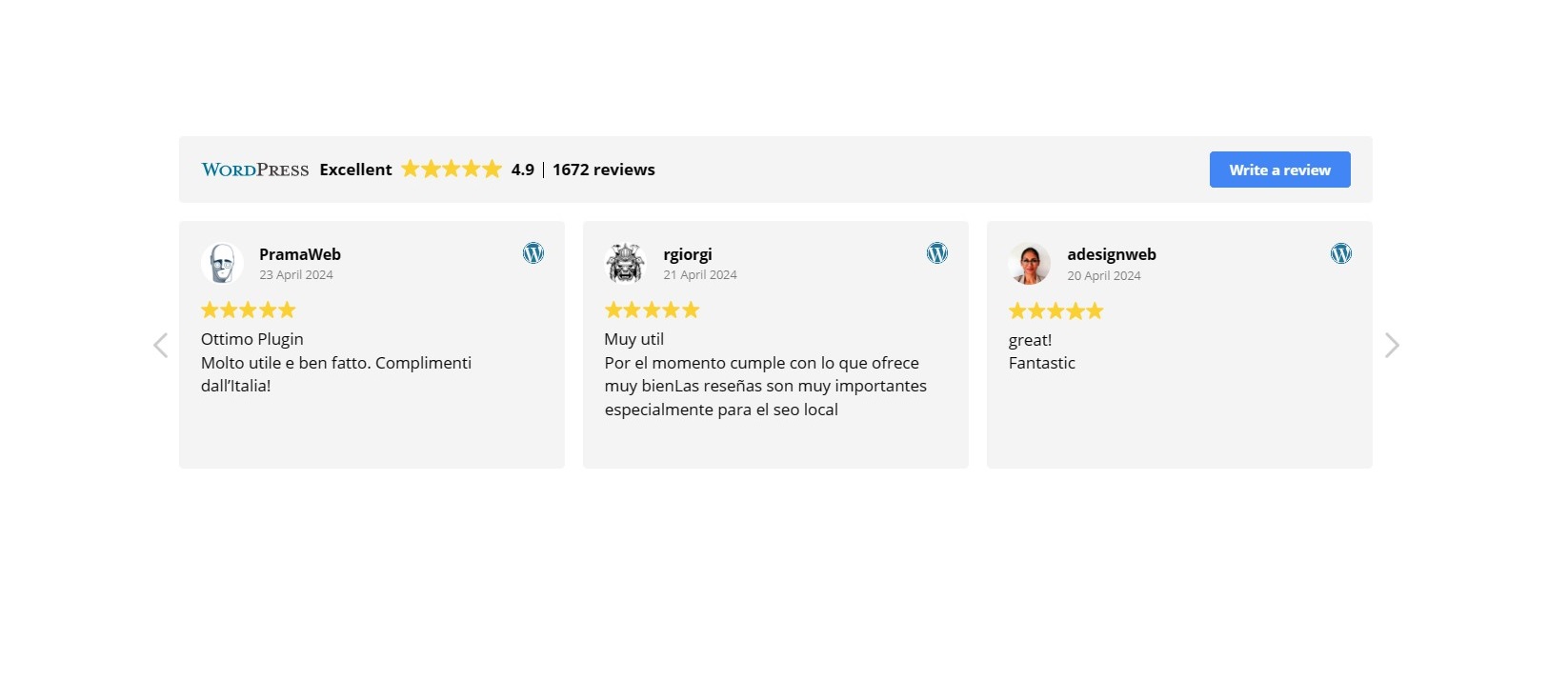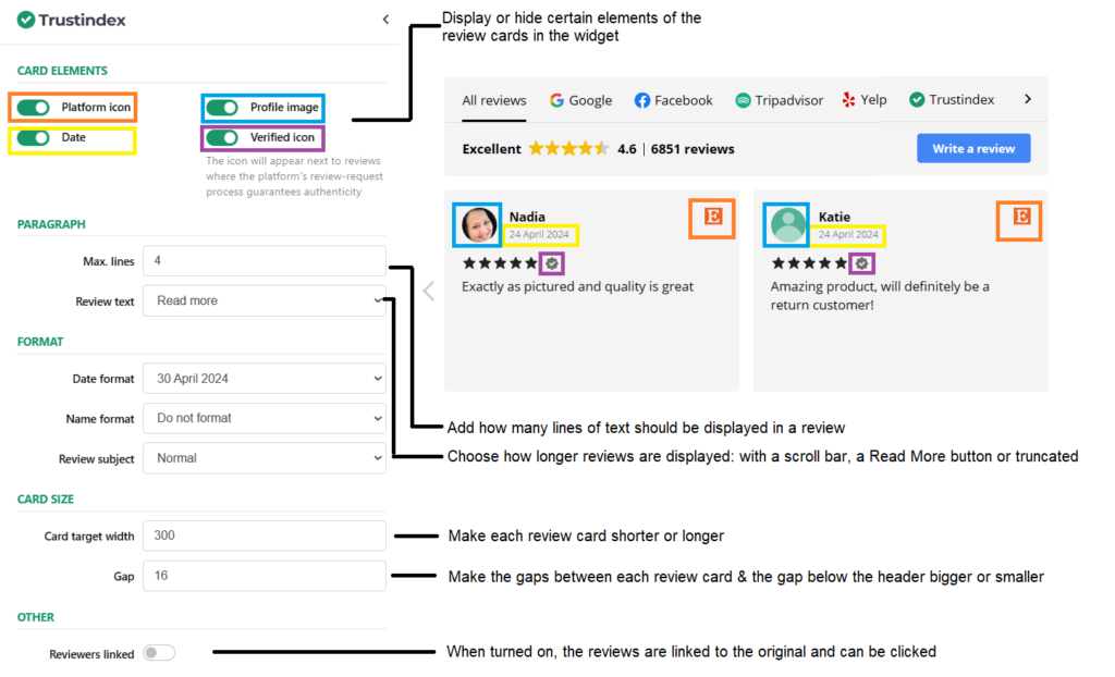 - Modify basically any visual element of the review widget: colors, fonts, padding, etc.