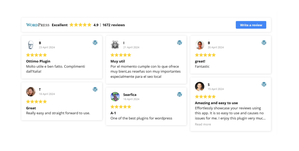 To display your best reviews, join the 17.000 websites currently using our review widgets and increase your sales by up to 20%.