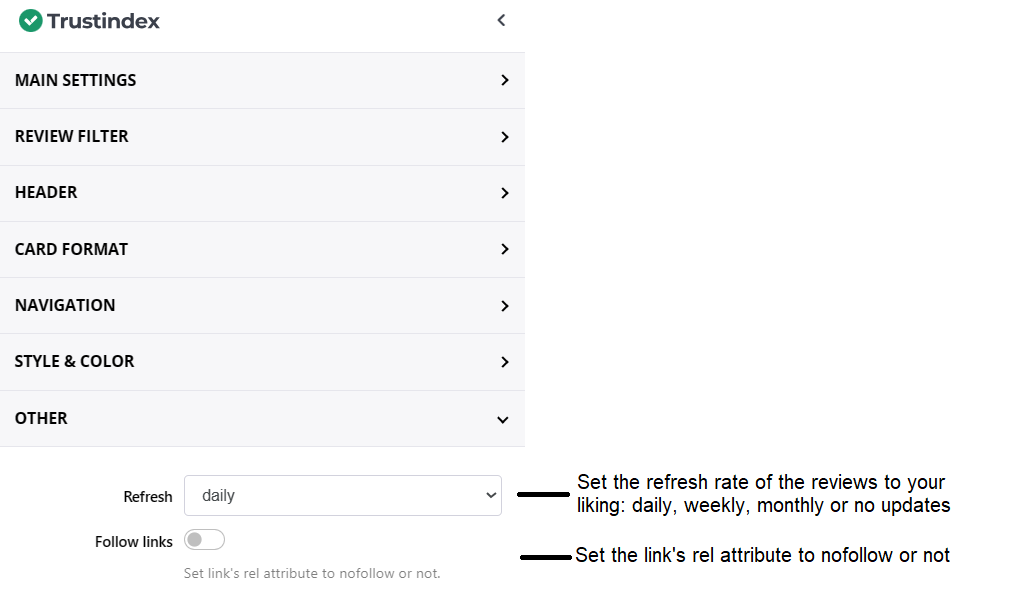 - This is where you can set the refreshing rate of your reviews in the widget.